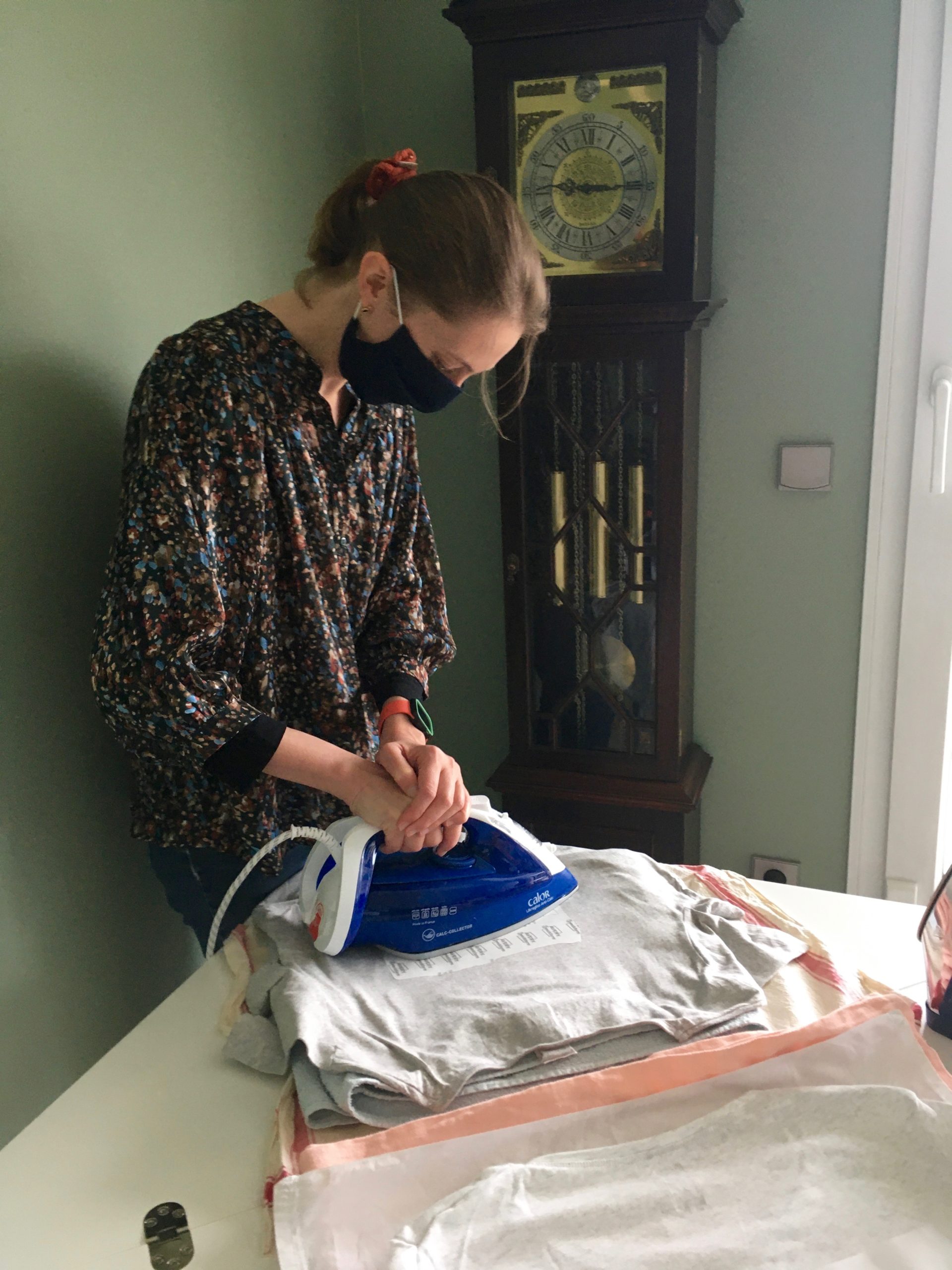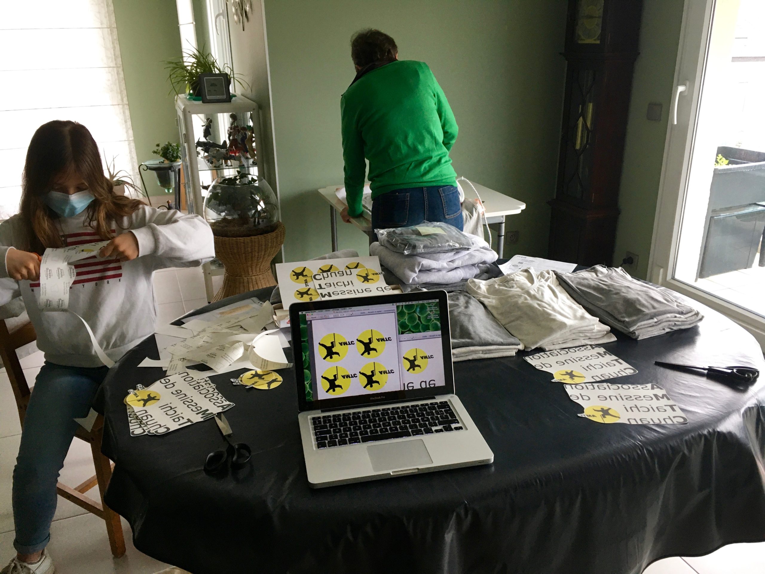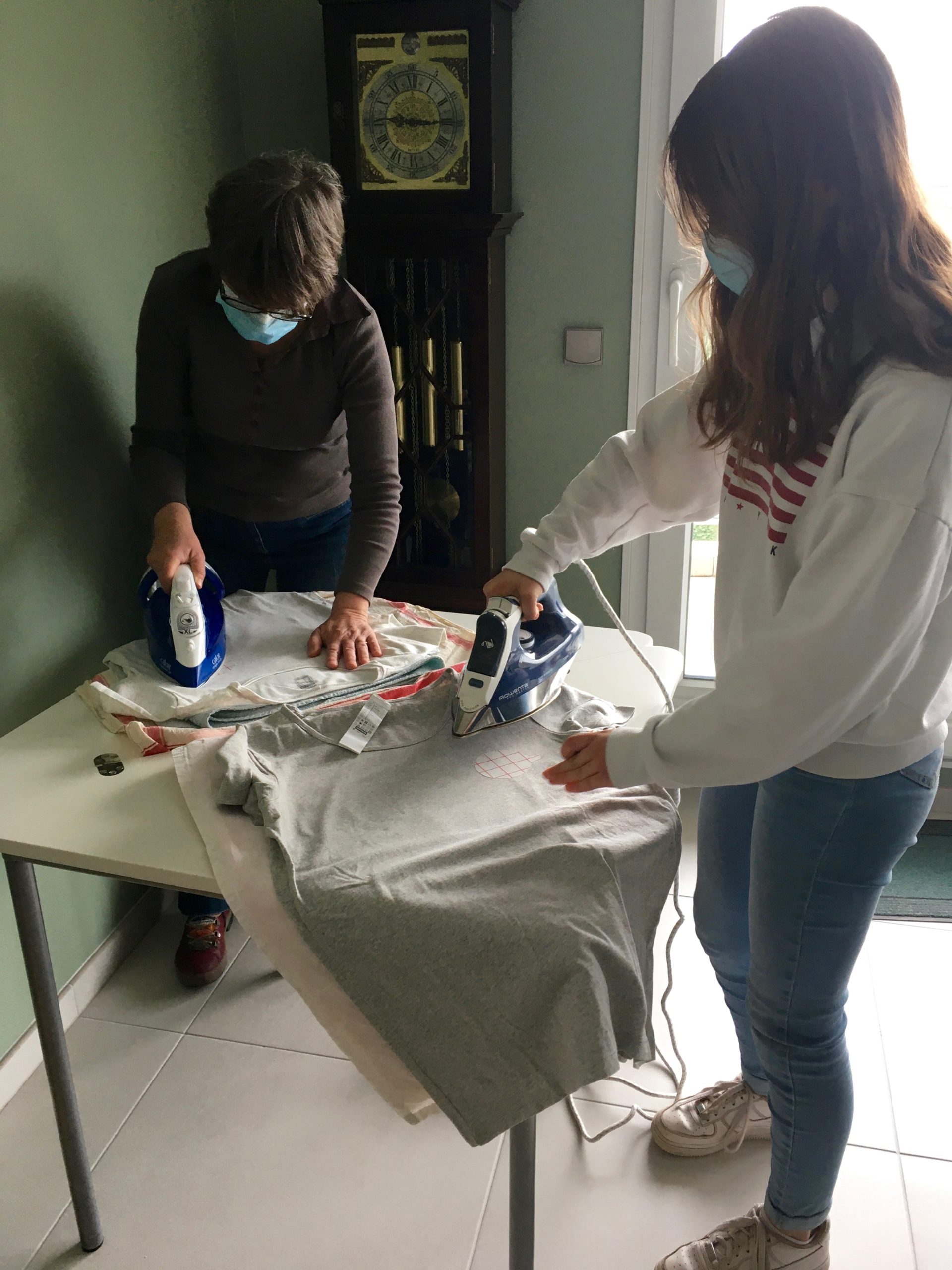 Une après-midi, une imprimante, 2 fer à repasser, 3 paires de petites mains : et hop le tour est joué, 19 T-shirts et 3 sweats ! 😀
